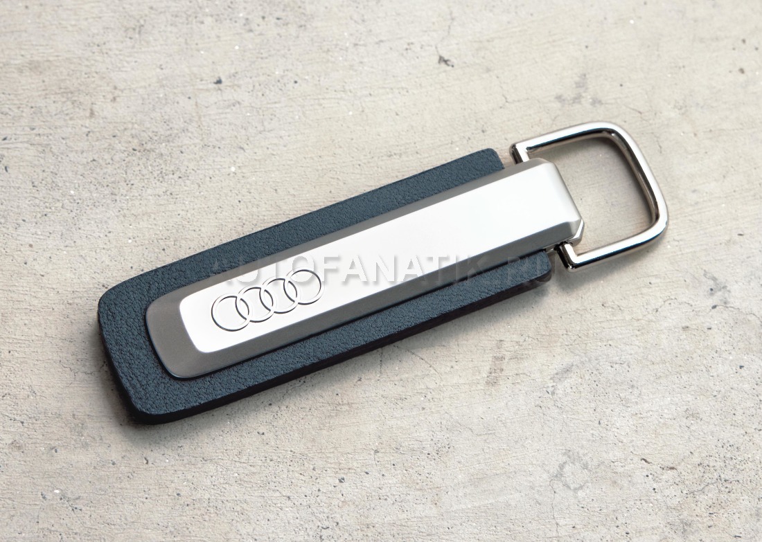 Металлический брелок для ключей в сочетании с натуральной кожей Audi Valcona, используемой в обивке сидений Audi. Разработан дизайнерами Audi на основе фирменного стиля Audi. Удобное использование: достаточно поднять и повернуть брелок. Можно прикрепить ключ от автомобиля Audi без дополнительного разъемного кольца. Рельефные кольца Audi.