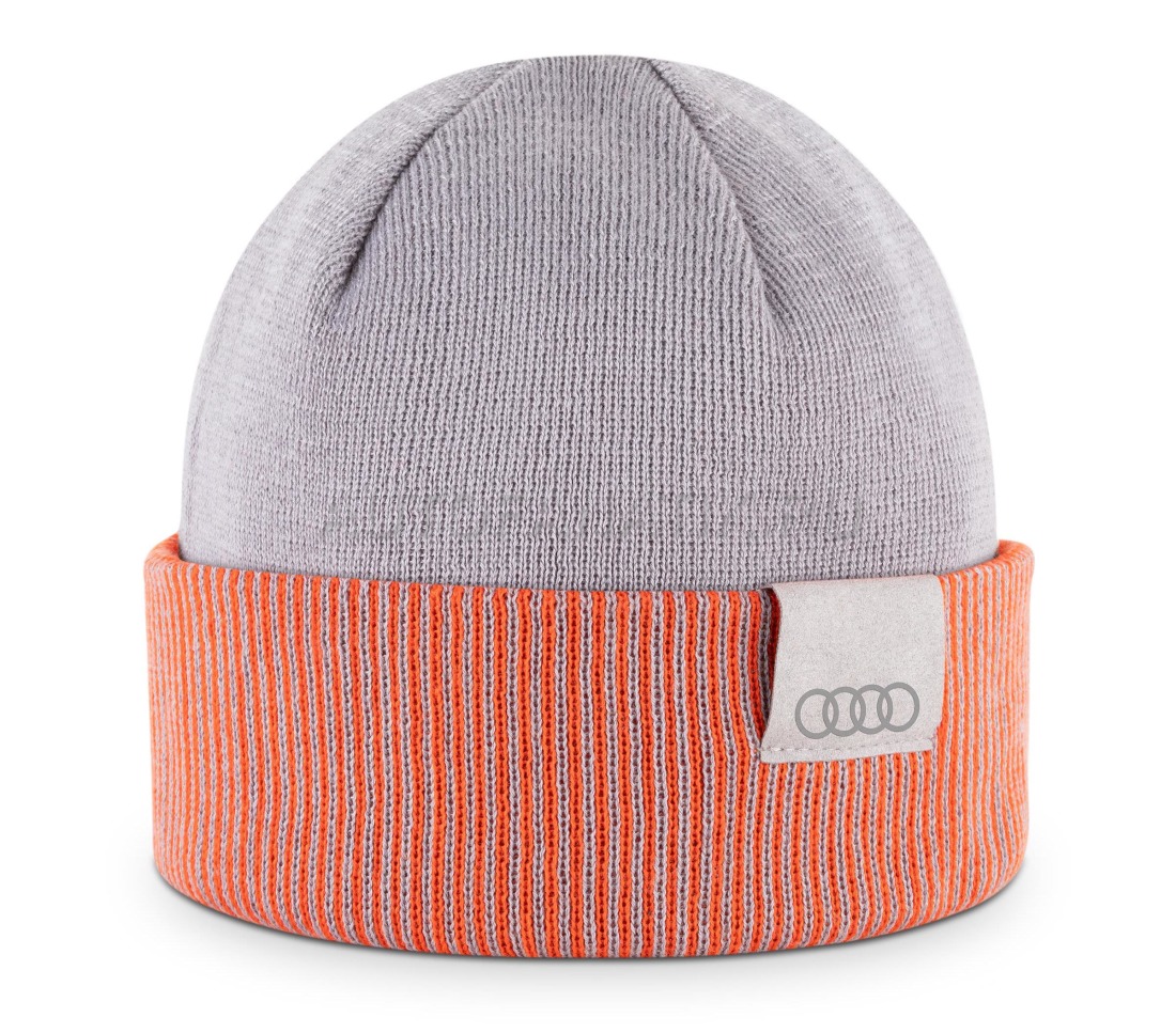 Универсальная и экологичная: двусторонняя вязаная шапка Audi изготовлена из 100% переработанного материала.
