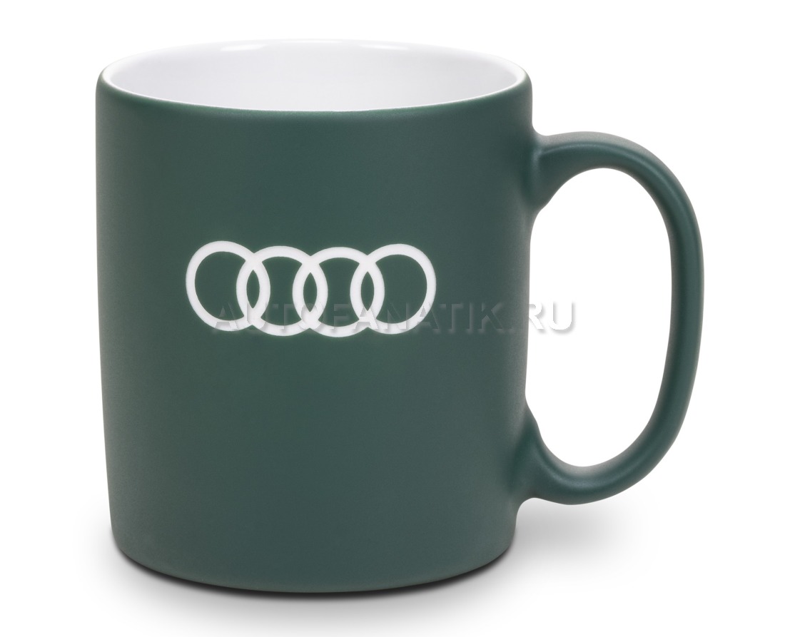 Высококачественная фарфоровая кружка с бархатистой матовой поверхностью. Рельефная гравировка в виде колец Audi.