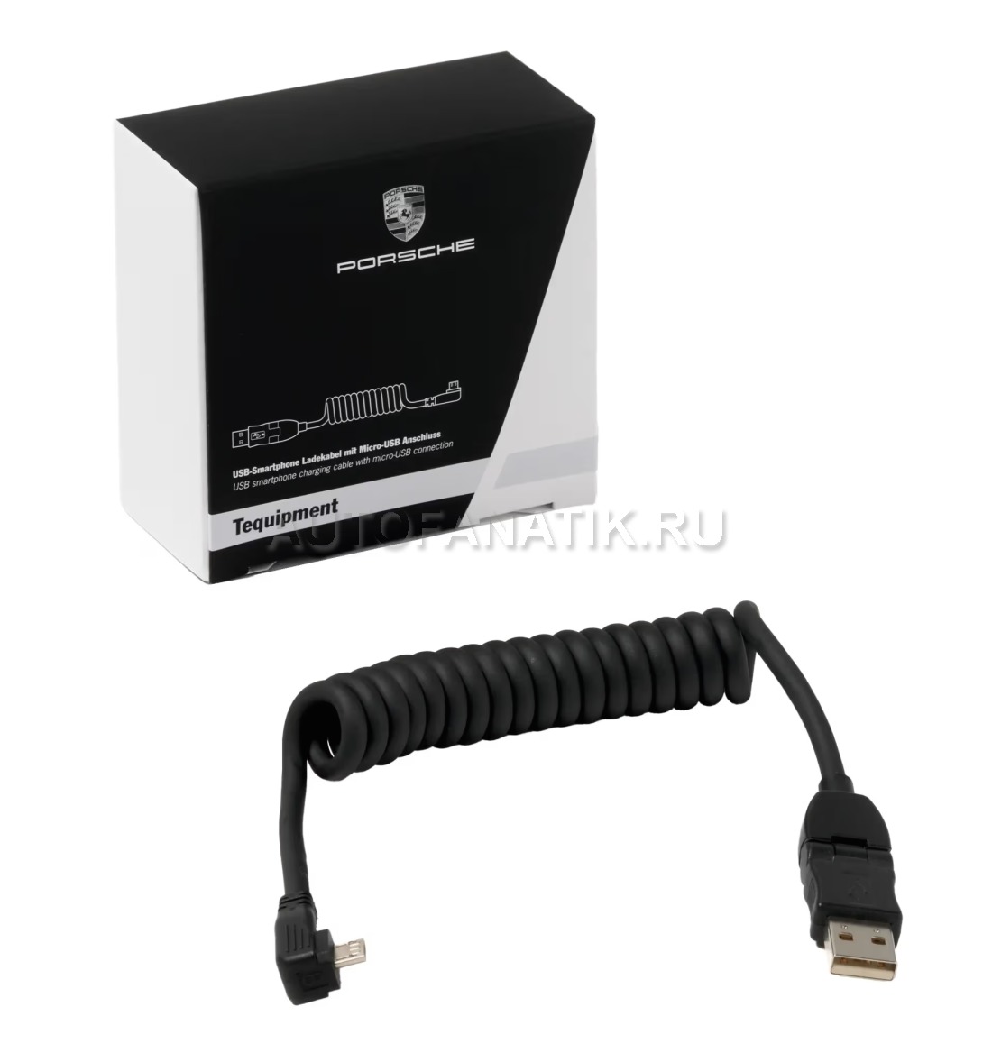Оригинальный спиральный кабель Porsche с подвижным USB-разъемом и угловым соединением для смартфона. Соединение/разъемы: USB - Micro USB. Длина прибл. 20-50 см. Для зарядки смартфона и воспроизведения музыки (можно управлять через руль и PCM).